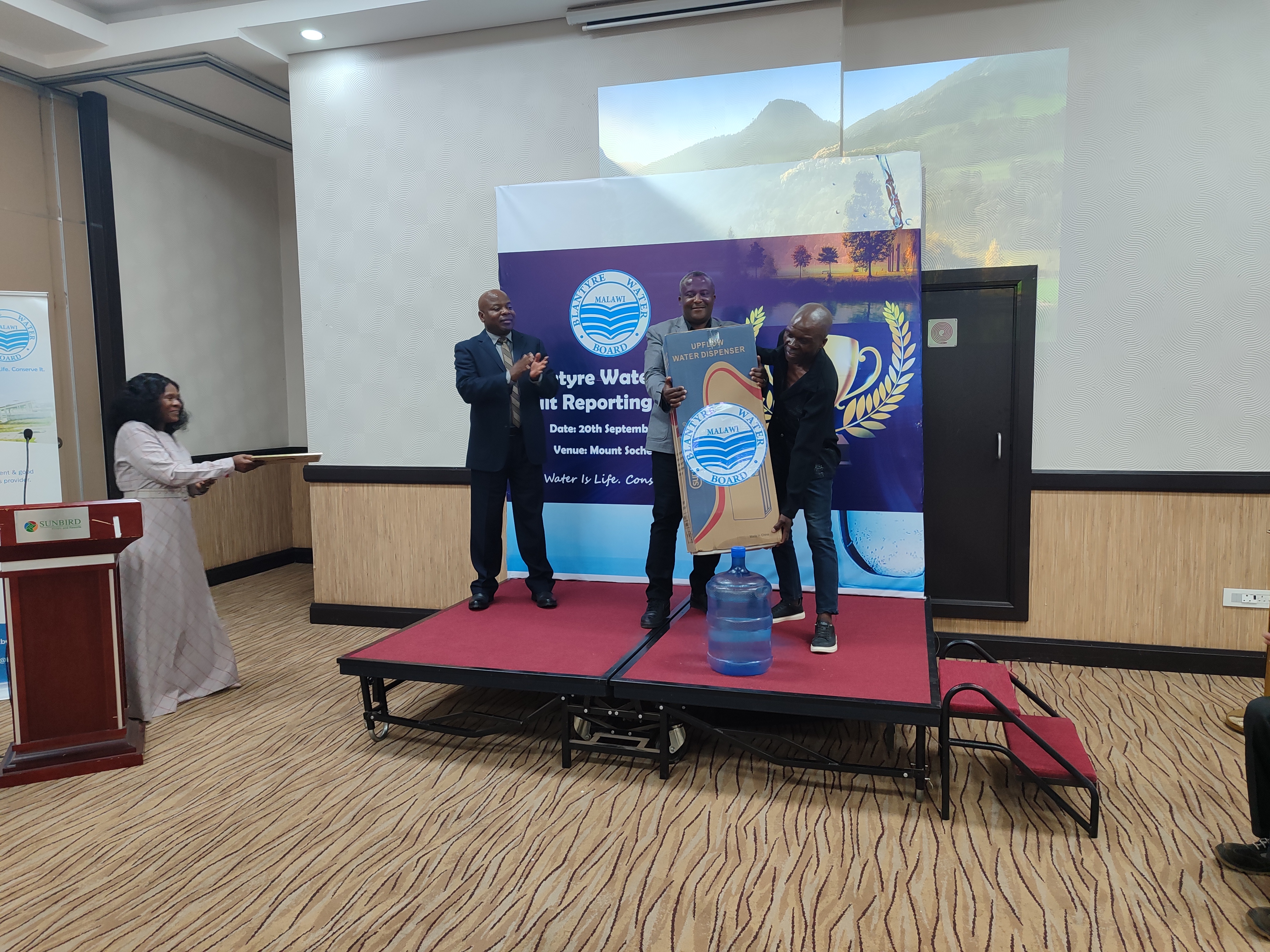 The awardees—Joel Mkulichi (55 faults), Patrick Matemba (67 faults), Vincent Chikaluma (32), Nedson Chintendere (48), Chikondi Gwetsani (34), and Doris Nyaka (103)—were celebrated at an event held today at Mount Soche Hotel. Each received a water dispenser and a certificate of recognition as a gesture of BWB’s appreciation for their role in maintaining the city's water infrastructure.