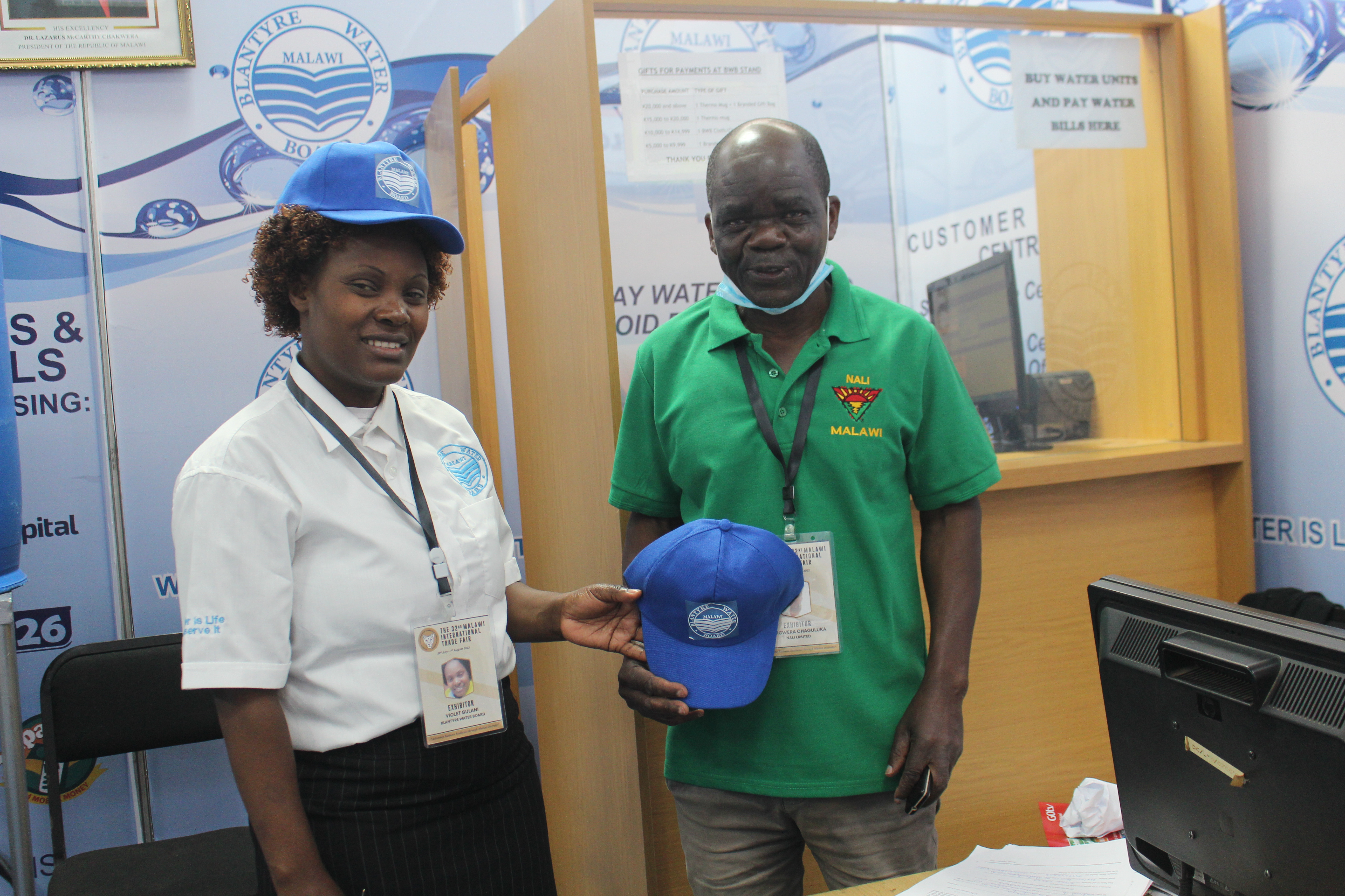 As Blantyre Water Board participates at the 32nd Malawi International Trade Fair which opened on 28th June 2022 at the Trade Fair grounds in Blantyre, the Board is giving out tokens of appreciation to its customers who are making payments at its pavilion.